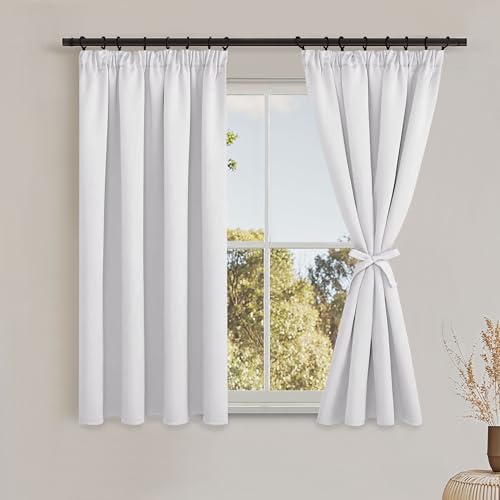 DWCN Lot de 2 Rideau Occultant Galon Fronceur Rideau Thermique avec Cravates Rideau Thermique Isolant anti Froid et Chaleur Rideau Cuisine, Rideaux pour Salon et Chambre, 117x137 cm (LxH), Gris Argent