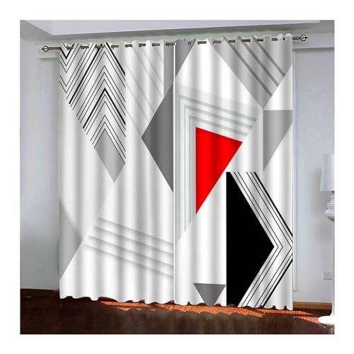 Daesar Lot Rideaux Salon Rideau Imprimés Motif Geometrique 3D Rideau Occultant Chambre 274x274CM Rideaux Oeillets Gris Blanc Rouge Noir