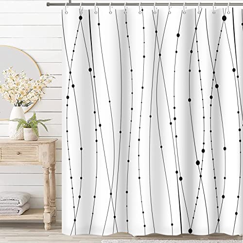 ABAKUHAUS Géométrique Rideau de Douche, Lignes et carrés, Tissu Ensemble de Décor de Salle de Bain avec Crochets, 175 cm x 240 cm, Noir et Blanc