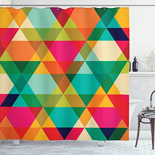 ABAKUHAUS Géométrique Rideau de Douche, Couleurs Rétro Art Graphique, Tissu Ensemble de Décor de Salle de Bain avec Crochets, 175 cm x 240 cm, Multicolore