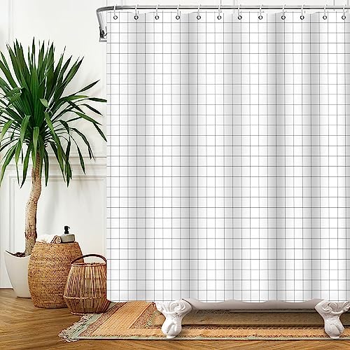 Bovlleetd Rideau de Douche à Carreaux Ensemble de Rideau de Bain géométrique Noir et Blanc avec Crochets pour hôtel Maison Rideau de Douche décoratif Minimaliste imperméable 183x198cm