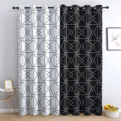 Yidbhsse Rideau Occultant Thermique Geometrique Mode À Oeillets, Rideaux Opaque Anti Froid Noir Et Blanc Lot De 2 132x160 cm Moderne Simplicité Blackout Curtains pour Chambre Salon Chambre Bebe