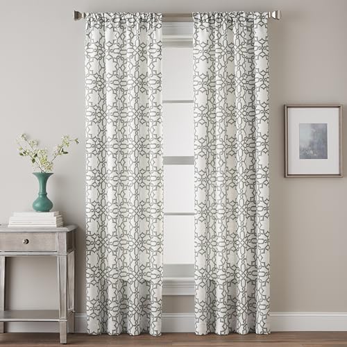 Elrene Home Fashions Kaiden Rideau de fenêtre géométrique à œillets en Lin, 132,1 cm de Large x 213,4 cm de Long (1, Gris)
