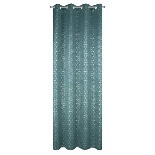 Eurofirany Rideau à Motif géométrique - Aspect Velours - 8 œillets - Élégant et Lisse - Couleur Unie - Doux - pour Salon, Chambre à Coucher, Salon - Turquoise + argenté - 135 x 250 cm