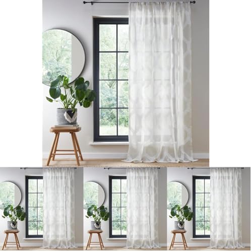 Fusion - Rideau Voilage Simple pour fenêtres L55 x L48 (140 x 122 cm) - Rideau en Voile pour Chambre/Salon - Rideau Voilage géométrique Moderne - Voilages intérieurs (Lot de 4)