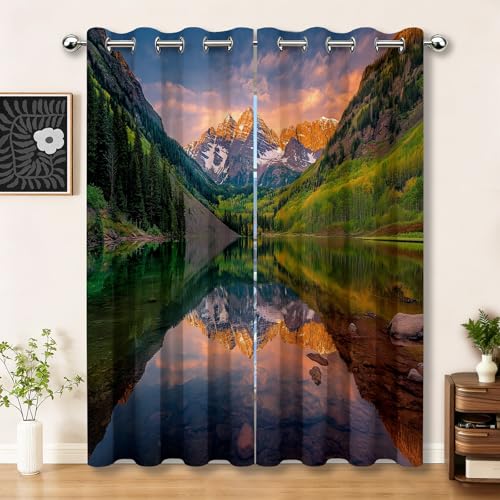 Lot de 2 Rideaux de Porte Occultants, Galon Fronceur 100L X 220H cm Design Paysages De Montagne Lacs - Rideau Isolant Thermique et Phonique pour Chambre, Salon ou Couloir Multicolore