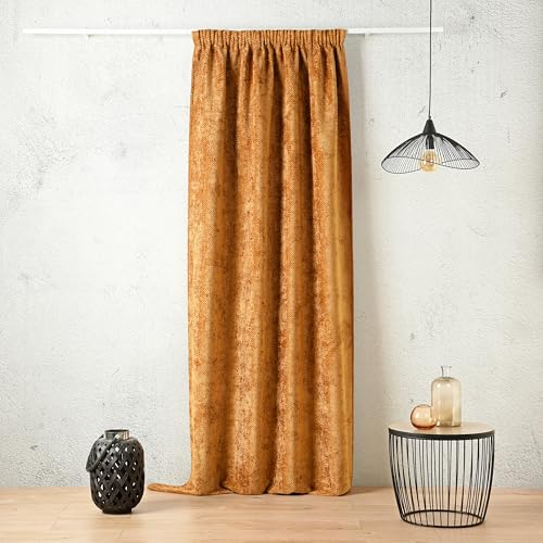 Linder Rideau Isolant obscurcissant Thermique et phonique - Coloris Orange Caramel - Style Velour - Finition Galon fronceur à Plat - Dimensions 135x260cm - 100% Polyester - Collection Colorado