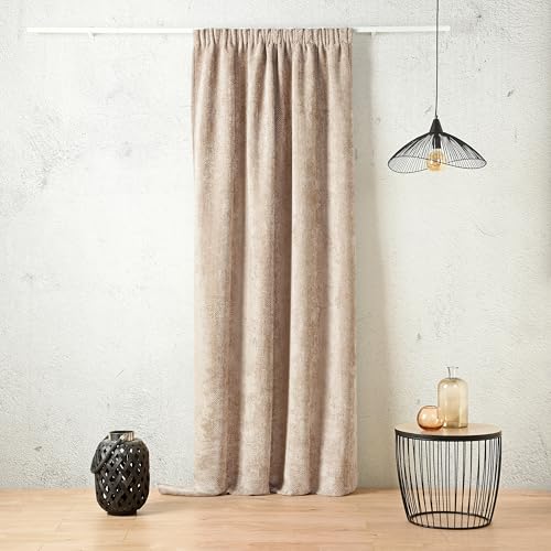 Linder Rideau Isolant obscurcissant Thermique et phonique - Coloris Beige Chamois - Style Velour - Finition Galon fronceur à Plat - Dimensions 135x260cm - 100% Polyester - Collection Colorado