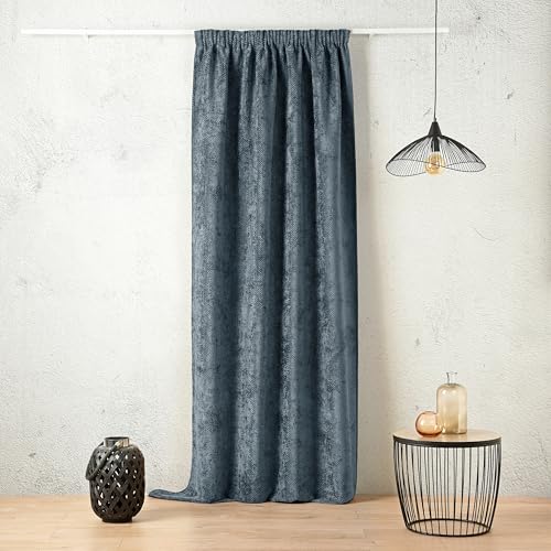 Linder Rideau Isolant obscurcissant Thermique et phonique - Coloris Bleu de Minuit - Style Velour - Finition Galon fronceur à Plat - Dimensions 135x260cm - 100% Polyester - Collection Colorado