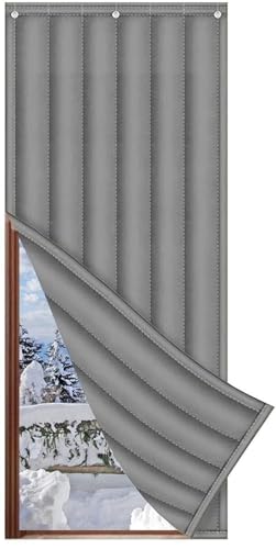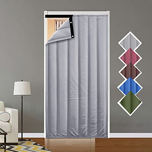 moismk Rideau de Porte d'entree Thermique Isolant Anti Froid, Rideau Phonique Porte, Panneau Imperméable avec Oeillets, Rideau de Porte Épaississant d'hiver pour Chambre Climatisée(Gray,90 X 200 cm)
