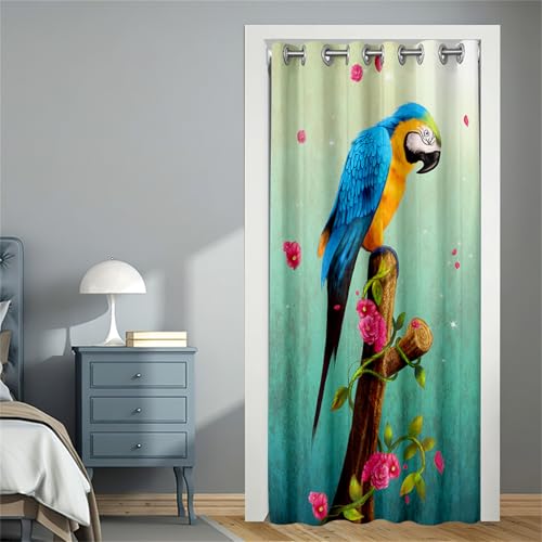 Surwin Rideau de Porte Occultant, Isolant Thermique Rideaux Draperies Opaque à Oeillets pour Interieur Exterieur d'entrée Salon Chambre Fenetre Placard -Perroquet 3D (Rose,120x180cm)