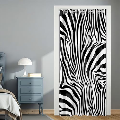 Surwin Rideau de Porte Occultant, Isolant Thermique Rideaux Draperies Opaque à Oeillets pour Interieur Exterieur d'entrée Salon Chambre Fenetre Placard -Imprimé Animal 3D (Imprimé Zèbre,120x200cm)