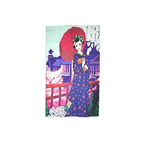 lachineuse - Noren Japonais Sakura en Fleurs - Rideau Japonais Femme Japonaise - Décoration Porte & Murs - Tapisserie Murale - 90 x 150 cm - Coton - Tableau Traditionnel - Idée Cadeau Déco Asiatique