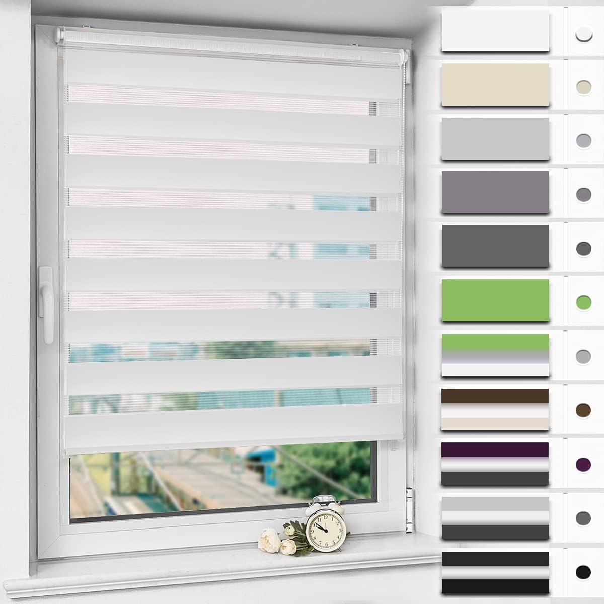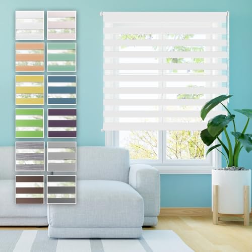 Store Jour Nuit sans Perçage 30 x 100 cm Tissu Double avec Ou sans Perçage Protection de Votre Vie Privée Rideau Store Enrouleur Jour Nuit Klemmfix pour Chambre, Salon, Blanc