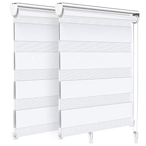 2PCS Store Enrouleur Jour Nuit Tissu Double avec ou sans Perçage 40x150cm Protection de Votre Vie Privée Rideau pour Fenêtres et Portes Store Blanc