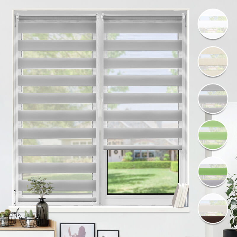 HOMEDEMO Store Enrouleur Jour Nuit sans Perçage, Double Tissu avec Clips, Rideau Occultant pour Fenêtre & Porte, 55l x 100L cm, Largeur du Tissu