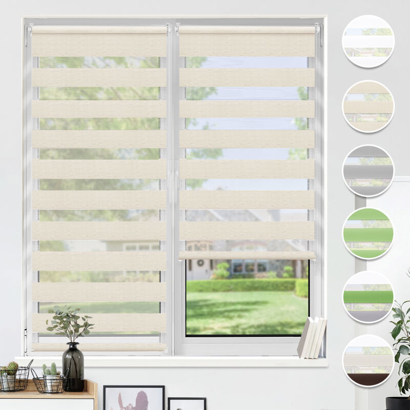 HOMEDEMO Store Enrouleur Jour Nuit sans Perçage, Double Tissu avec Clips, Rideau Occultant pour Fenêtre & Porte, 55l x 120L cm, Largeur du Tissu