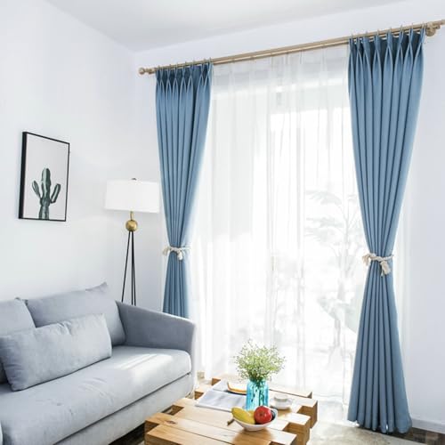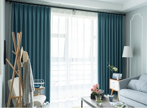 BWDHJLEY Rideau Lin Fenetre Chambre, Occultant Rideaux Lot de 2 Vert Paon Couleur Unie LxH 137x229cm