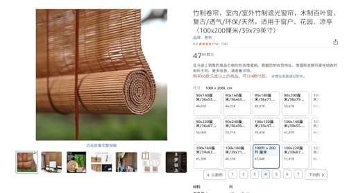 Roller blind Stores à Enroulement en Bambou,Rideau Occultant en Bambou Extérieur/Intérieur,Stores Venitien Bois,Rétro/Respirant/écologique/Naturel,pour Fenêtres,Jardins,Belvédères (100x200cm/39x79in)