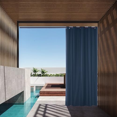 Rideau Extérieur Occultant Revêtement De Fenêtre Imperméable Rideaux Rideaux Extérieurs Panneau Supérieur à œillets pour Patio, Pergola, Porche Bleu, Blue 2, 254 x 305cm | 1 Panel