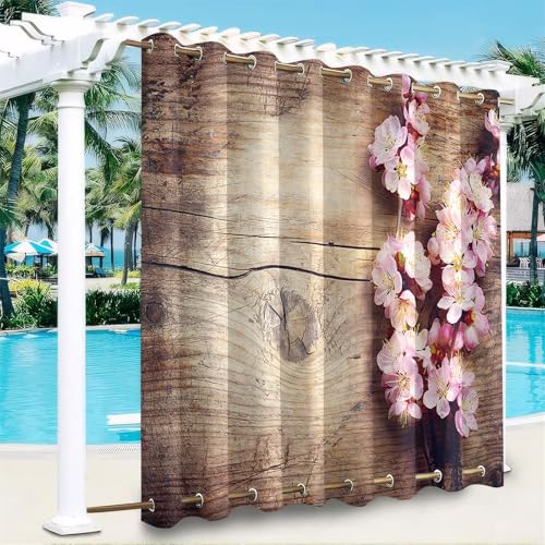 Hiseng Rideaux Extérieur Imperméable Œillets Haut et Bas, Motif Fleur 3D Rideau Occultant Thermique Isolant Exterieur 1 Pièce pour Jardin Pergola Cabane Terrasse (Fleur de pêcher A,132x182cm)