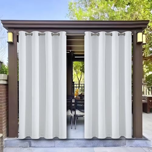 PONY DANCE Rideau Occultant Extérieur- Rideaux et Draperies Isolant Lumière Anti Vent Chaleur Prêt à Poser pour Pergola Terrasse Maison, L132 x H243 cm, Gris Blanc, 2 Panneaux