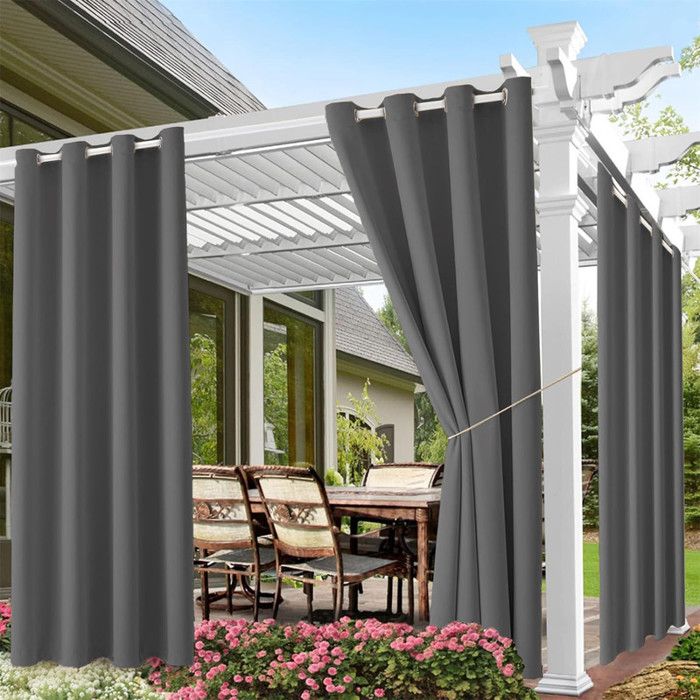 Rideau Extérieur Occultant Revêtement De Fenêtre Imperméable Rideaux Rideaux Extérieurs Panneau Supérieur à œillets pour Patio, Pergola, Porche Bleu, Grey 1, 254 x 213cm | 1 Panel