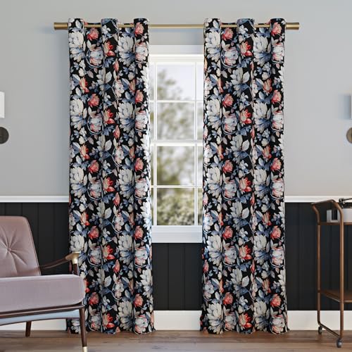 Sun Zero Irma Panneau de Rideau occultant à œillets Motif Floral Vintage, 101,6 x 213,4 cm, Noir