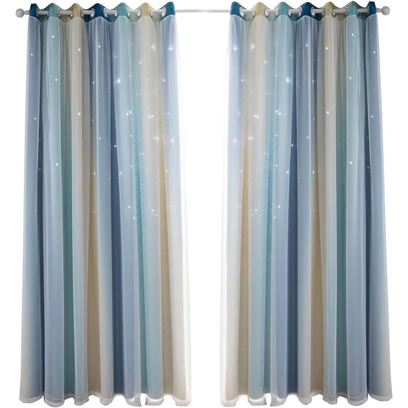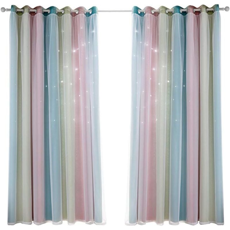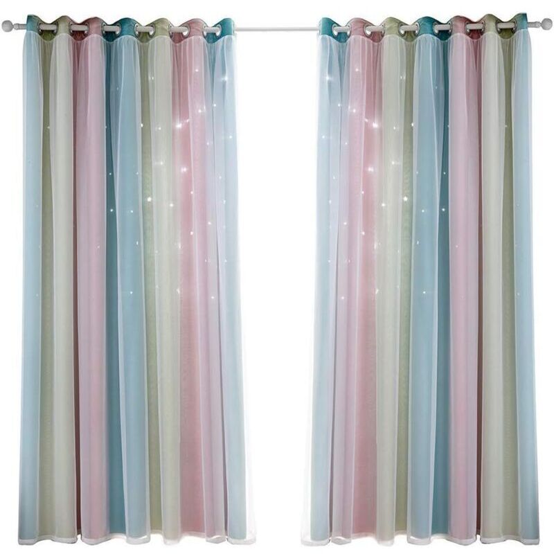 1 Panneau Étoile Rideaux Stars Rideau Occultant pour Enfants Filles Chambre Salle à Manger, Arc-en-Ciel Plein de Couleurs Double Couche Étoile