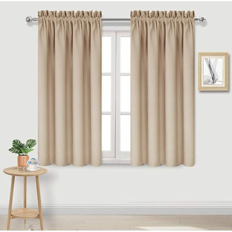 Rideau occultant beige pour chambre à coucher, isolation par passe-tringle, rideaux à économie d'énergie, largeur 38 x longueur 45 pouces, 2 pièces