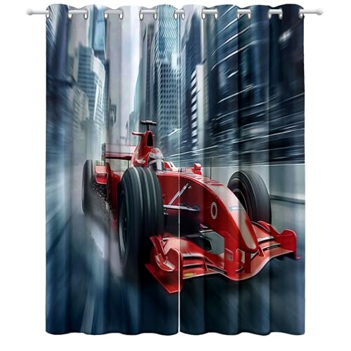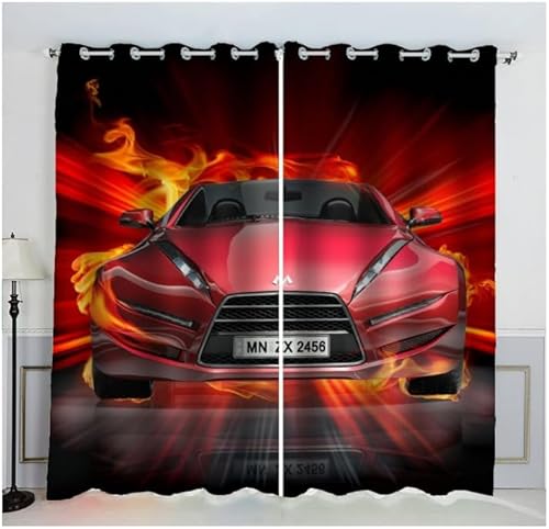 Sepustas Oeillet pour Rideaux Voiture De Course Rideau Thermique Isolant Anti Froid 3D Rouge Brûlant Rideau Occultant Opaque Salon Maison Décoration Rideau Motif Polyester(234x183 cm)