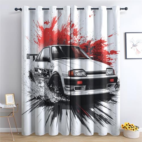 GEDAEUBA Rideau Occultant Thermiques Voiture de Sport Japonaise - Lot de 2 Rideaux Imprimé pour Salon Chambre Fenetre Cuisine, Rideaux et Draperies Intérieurs à Oeillets, 75x166 cm (LxH)