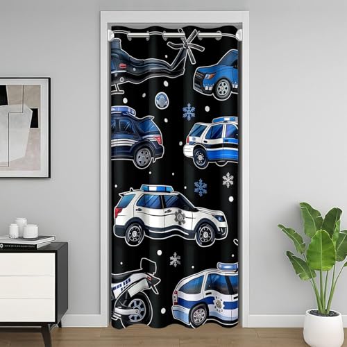 Voiture de Police Rideau de Porte pour L'Intimité de Porte,Policier Rideau Occultant pour la Chambre,Voiture de Police Rideaux de Séparation de Chambre,Flocon de Neige D'Hiver Rideau Porte 132x203