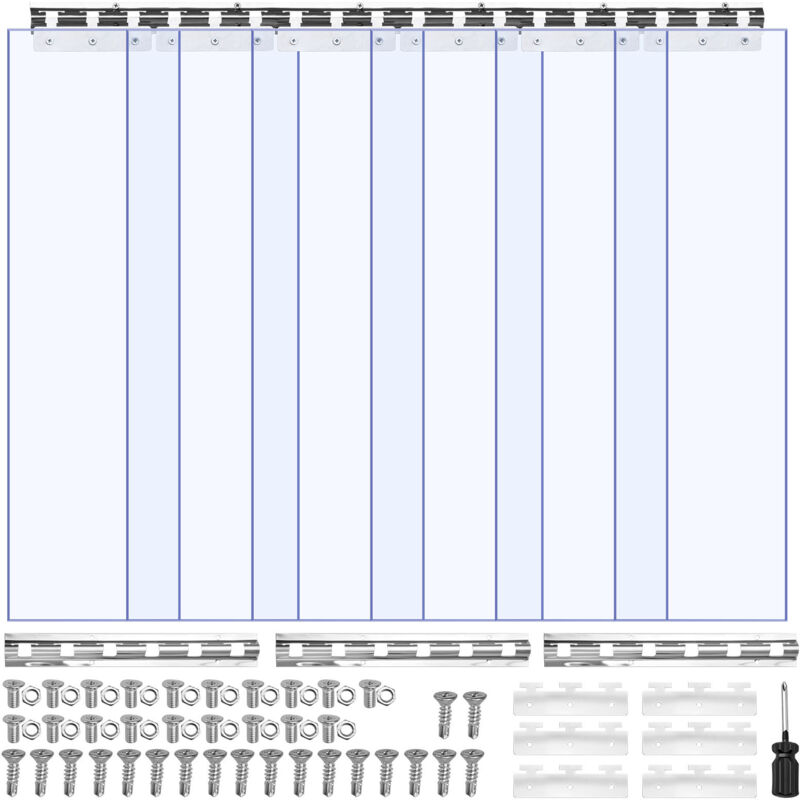 VEVOR Rideau Laniere PVC 0,96x2,1 m Rideau Lamelle Plastique Transparent de Porte, Lot de 6, Bande Isolation Thermique Coupe Vent, pour Portes de