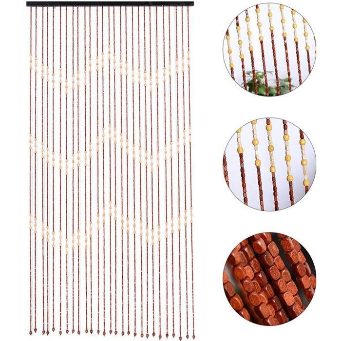 XIAYUHE Rideau de porte en perles, 31 chaînes de perles, fabriqué en bambou et bois, fait à la main, beige, marron, 90 x 175 cm, rideau de porte en bois naturel