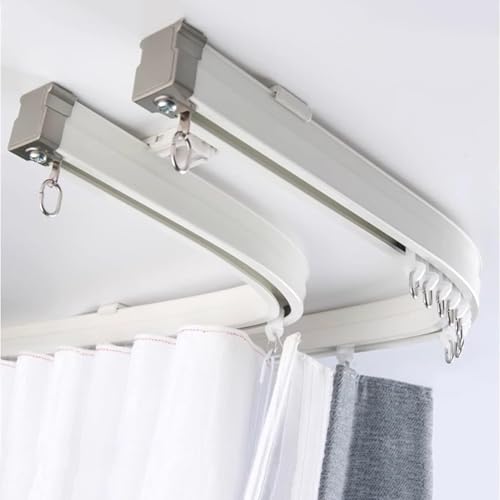 LBLFEBD Double rail de rideau courbé pour baie vitrée, système de rail de rideau, rail incurvé à double baie vitrée, flexible en alliage d'aluminium, montage au plafond/mur avec fixations