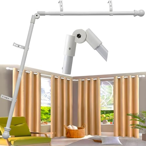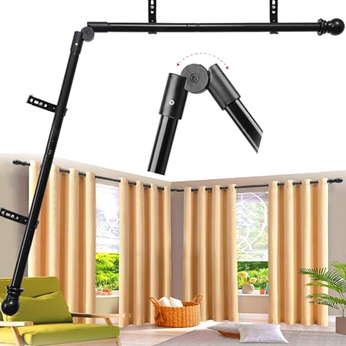 Tringle à rideau d'angle de fenêtre - 2,5 cm - Robuste - En forme de L - Réglable de 91,4 à 345,4 cm - Avec connecteur à 180° - Tringle à rideaux coudée à monter soi-même - Pour baie vitrée, fenêtre