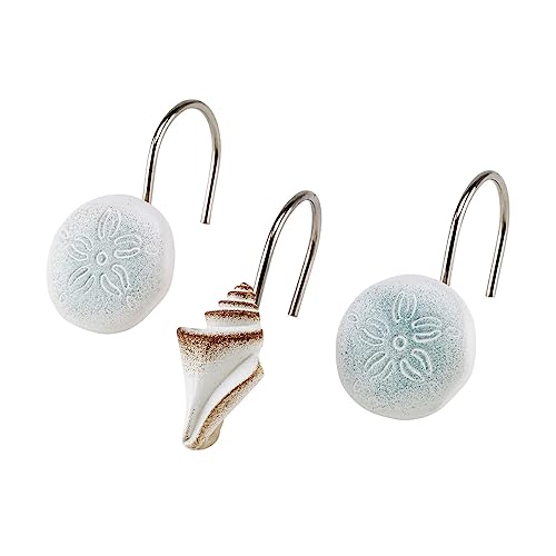 Avanti Linens - Lot de 12 Crochets pour Rideau de Douche, Accessoires de Salle de Bain inspirés de la Ferme, Collection Coquillage de Ferme
