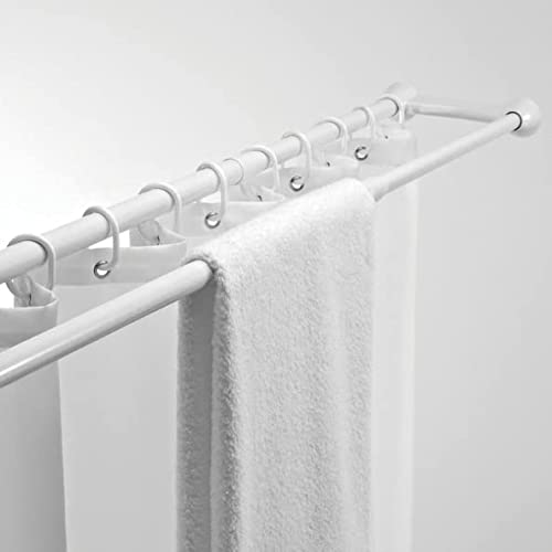 MSV Barre Tringle pour Rideau de Douche ou Baignoire Double Extensible à Fixer en Alu 125-225cm Blanc