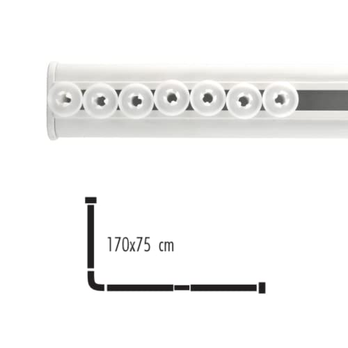 Spirella, Barre tringle pour rideau de douche d'angle à fixer en Alu, Modèle SURPRISE, Adapté à tous les Rideaux, Glisseurs Inclus, Ajustement Facile, 170x175cm, Blanc