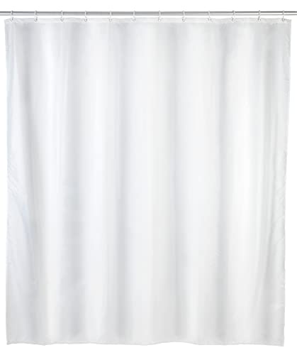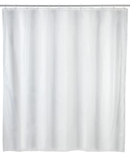 WENKO Rideau de douche Blanc anti-moisissure 120 x 200 cm Antibactérien, lavable, avec 8 anneaux pour rideau de douche Blanc