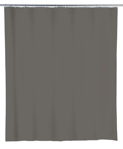 WENKO Rideau de douche gris souris - Imperméable à l'eau, entretien facile, avec 16 anneaux pour rideau de douche, Polyéthylène, 240 x 180 cm, Gris