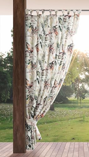 Eurofirany Garden Rideau Extérieur avec Onglet en Haut - 1 pc. Rideau Imperméable, Coupe-Vent, Fermeture Velcro, Rideau pour Pergola, Gazebo, Terrasse, Pavillon, 155x260 cm, Imprimé Vert