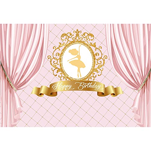 Aoihrraan 1,5x1m Joyeux Anniversaire Photographie Toile de Fond Ballet Filles Rose Rideau Baroque Rond Bordure Motif Fond Ballerine Princesse Anniversaire Fête Gâteau Smash Bannière Photo Props