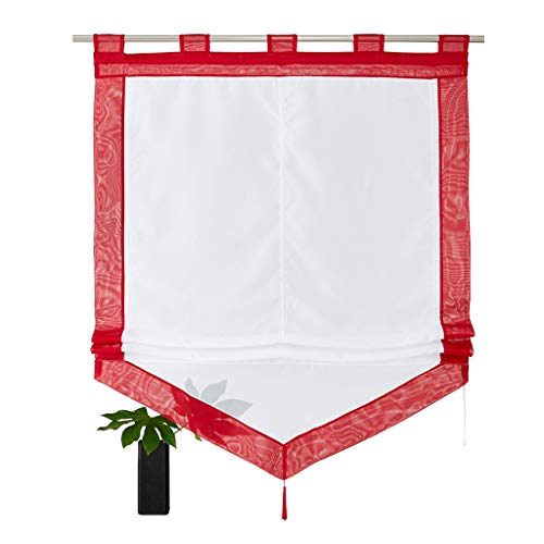 SIMPVALE 1 pièce Rideau Romain Rouge 80 x 140 cm Store Romain avec Décoration de Gland Rideaux de Fenêtre, Les Rideaux Voilages pour Chambre Salon Cuisine Balcon