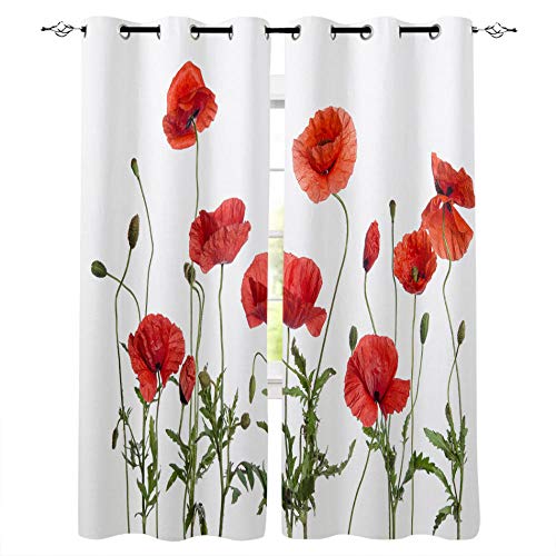 AHJJK Rideau Occultant Coquelicot Rouge Polyester à Oeillet Rideau Isolant Thermique Réduction de Bruit - Convient à Chambre Salon Et Chambre d'enfants 2 Panneau 75x166 cm