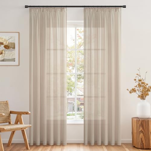 Topfinel Rideau Voilage Salon Beige Transparent avec Galon Fronceur 2 Panneaux de Rideaux Voile en Lin Effet Voilages Intérieurs Fenetre de Chambre Enfant Fille Adulte Cuisine Porte, 140x260 CM