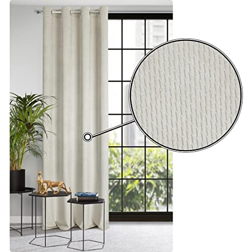 Eurofirany Logan Rideau Occultant Extra Long-1 Unité, Oeillets, Blocage de la Lumière, Assombrissement de la pièce, Chambre à Coucher, Salon, Polyester, Beige, 135x250 cm