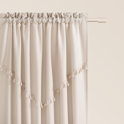 MRTREES Rideau Voilage Salon Beige avec Crochet pour Rail Glissant 140x170 cm (LXH) Rideaux Pas Cher Boheme Moderne Court pour Cuisine Chambre Salon, Lot de 2