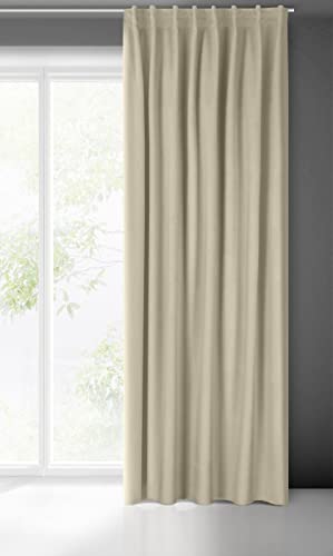Design91 Eurofirany Rosa Rideau en Velours Doux Uni Opaque avec Galon Fronceur - 1 Unité, Moelleux, Panneau Drapé, Classique, Élégant, Salon, Chambre, 200 g/m², 140x270 cm, Beige
